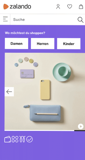Beispiel: Plötzliche Layoutverschiebungen können auftreten, wenn Werbung nachgeladen wird oder Inhalte nachträglich per JavaScript hinzugefügt werden. Anbei befindet sich eine simulierte Layoutverschiebung am Beispiel der mobilen Zalando-Startseite.